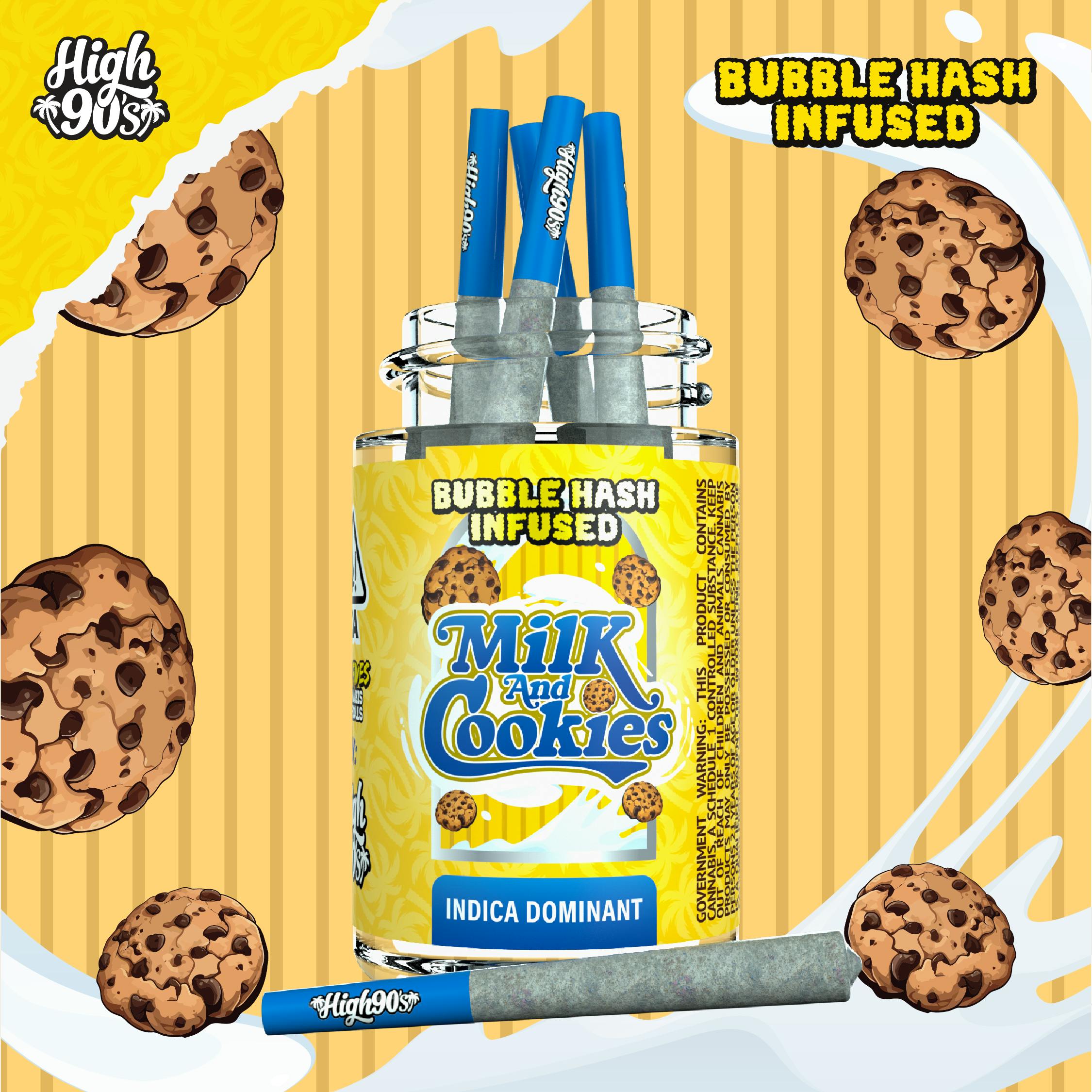 High 90's - Milk & Cookies - 2.5G - High Fives Bubble Hash Infused Pre Roll Pack